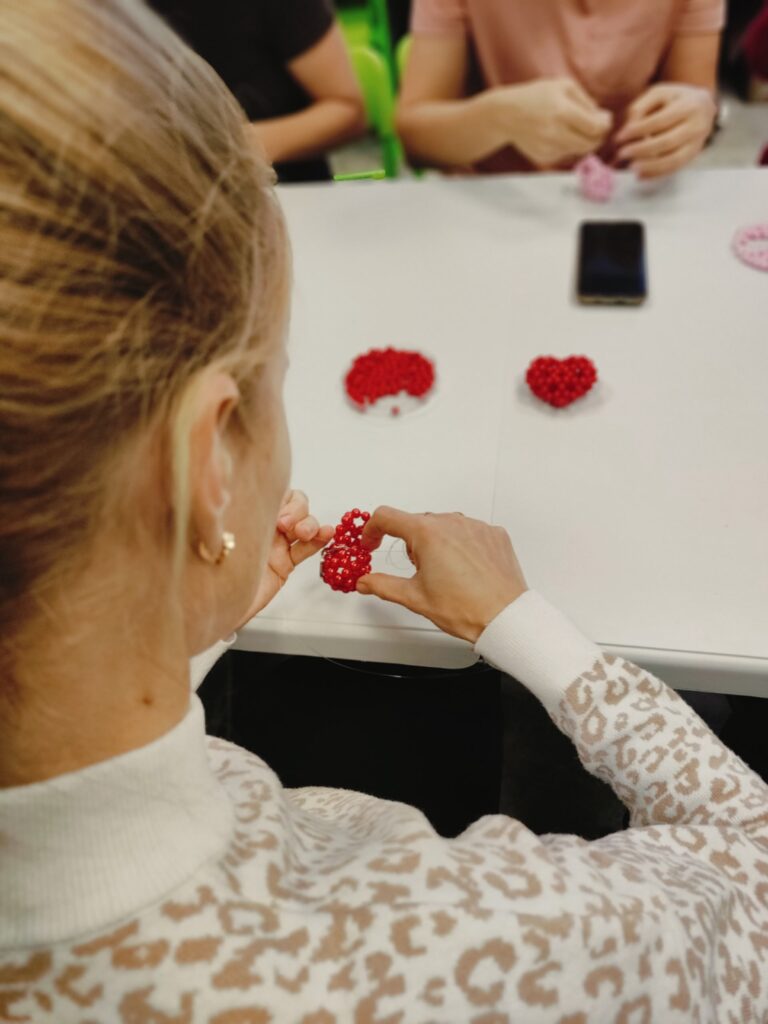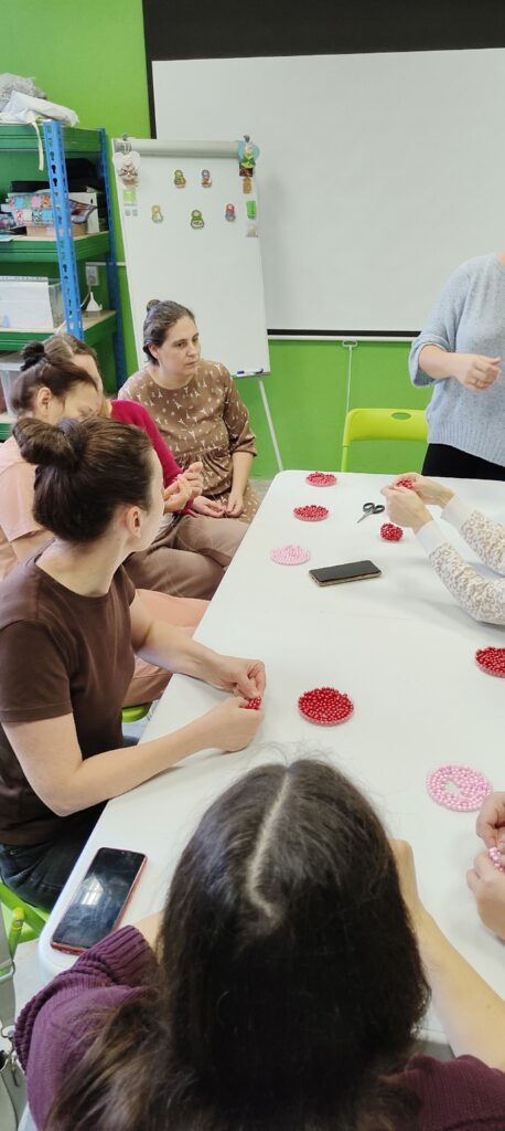 В рамках реализации проекта «МногоДетные ремесленники 2.0» сегодня в Общественном пространстве организации прошел мастер класс от Надежды Петровой по изготовлению брелка из бусин «Сердце», методом плетения.