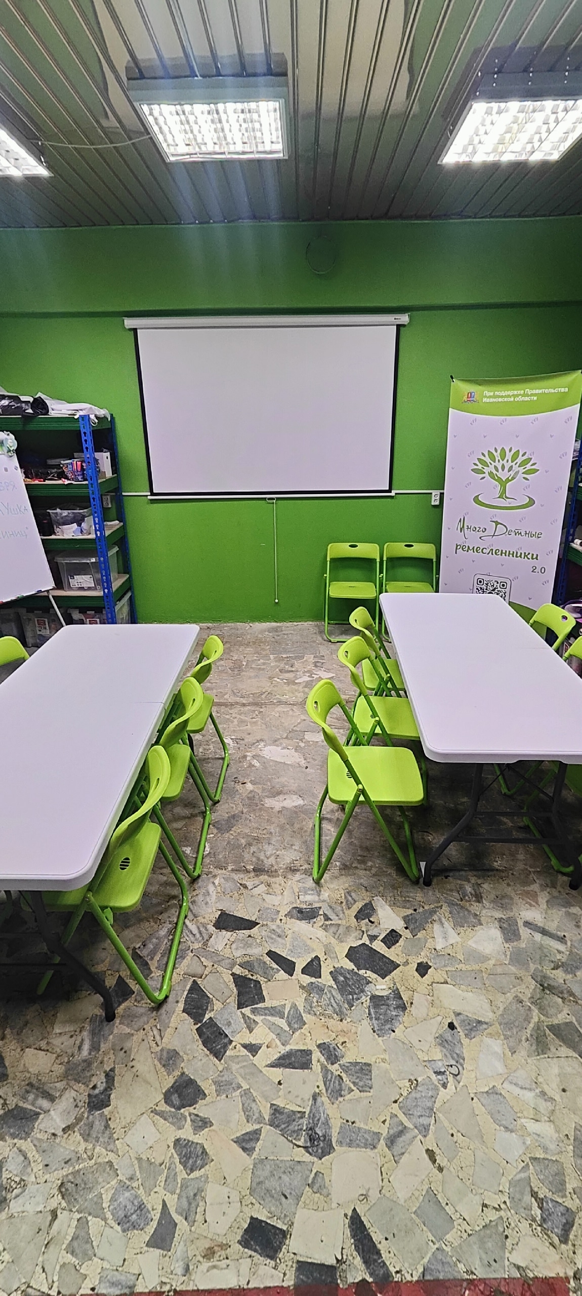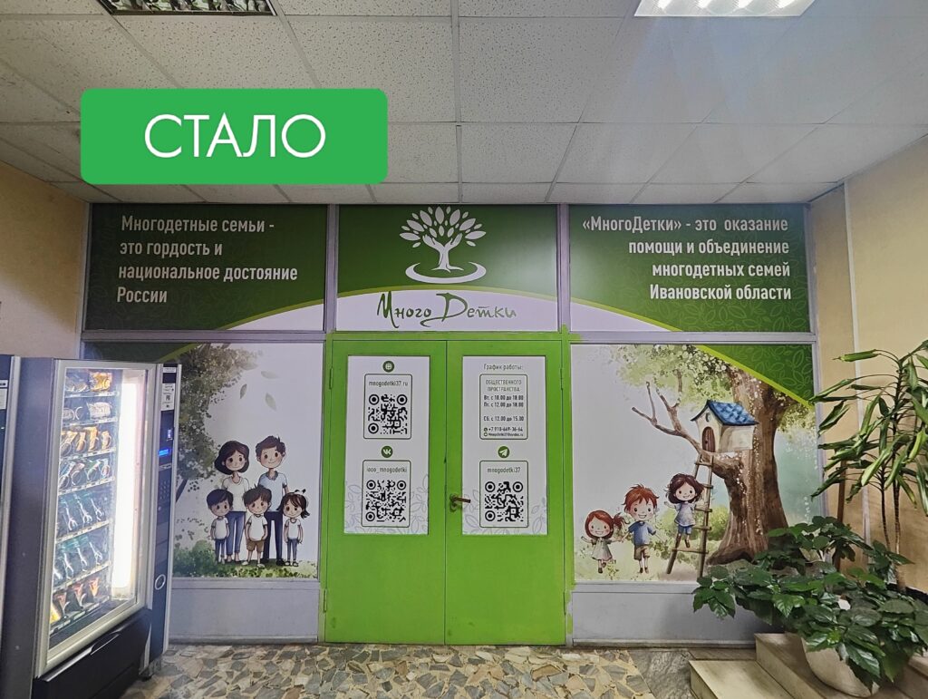 Благодаря поддержке субсидии Управления соцзащиты Администрации г. Иванова мы преобразовали свое Общественное пространство: декорирована входная группа, приобретены столы, стулья, экран и проектор.