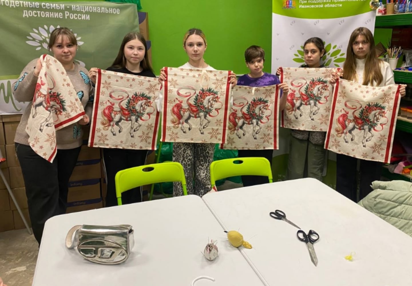 Итог: красивые полотенца с символом Нового года — Красной лошадкой будет отличным подарком для родителей наших участников мастер класса.